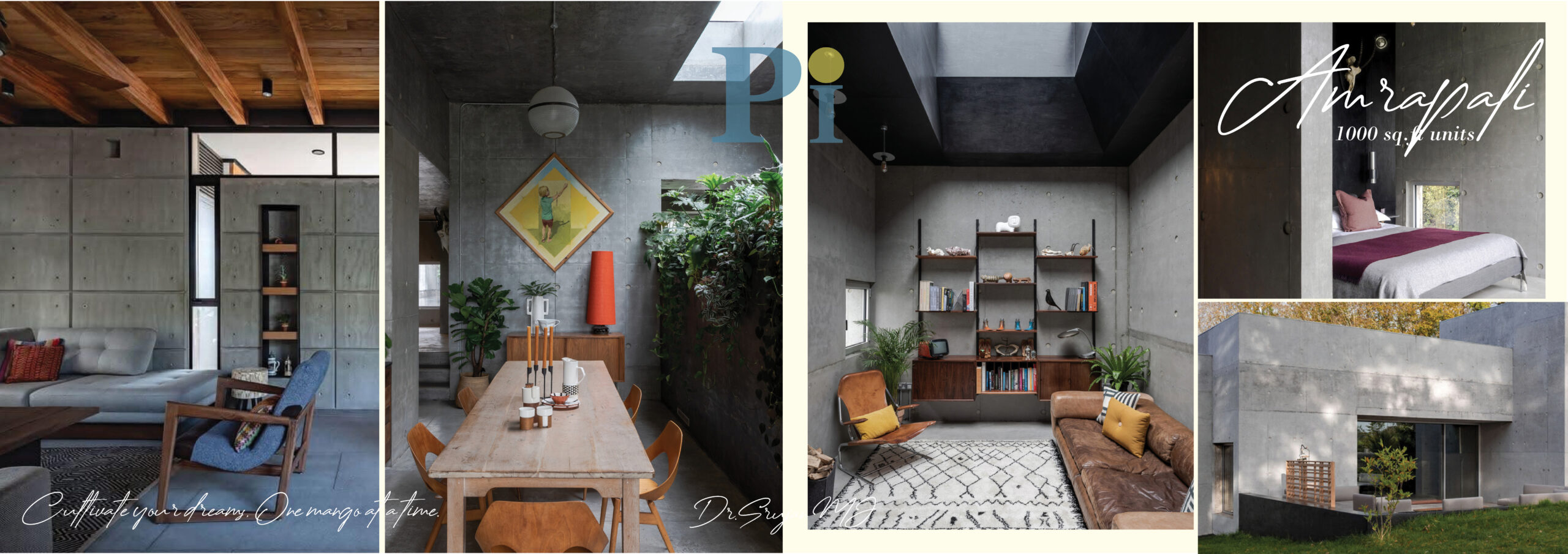 Amrapali – 1000 sq.ft units – A small sized unit aimed at sustainability. These units incorporate exposed concrete, a Brutalist Design Theme, around which the design of this small yet spacious unit revolves.